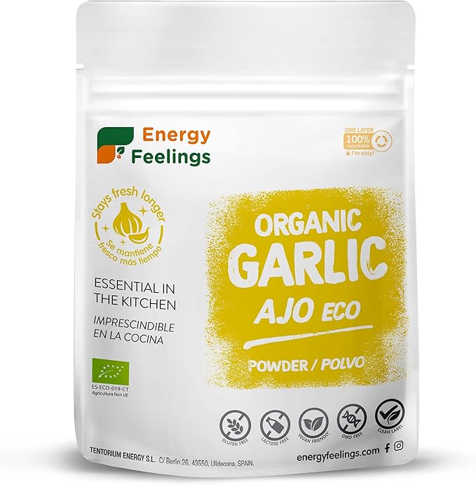 Be the first to review “Energy Feelings Organic Dehydrated Garlic Powder 200 g, Ground Garlic Granules Organic 100% Natural No Additives or Added Sugars Vegan Gluten Free, Ideal as a Spice for Cooking”